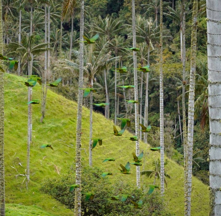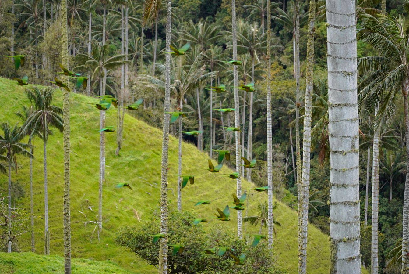 Randonnée dans la forêt de palmiers à cire de la vallée de Carbonera, visite de la maison des perroquets à oreilles jaunes et de la cascade Gallego Tochesito.