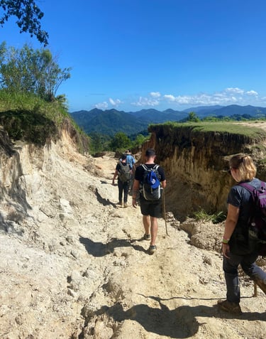 Montées exigeantes, pauses, baignade en rivière et fruits au sommet.
