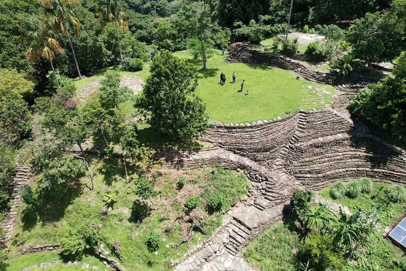 Pour entrer dans le site archéologique, nous avons une marche très facile d'environ 20 minutes sur une route étroite, pavée et originale de la communauté Tayrona jusqu'aux terrasses du site.